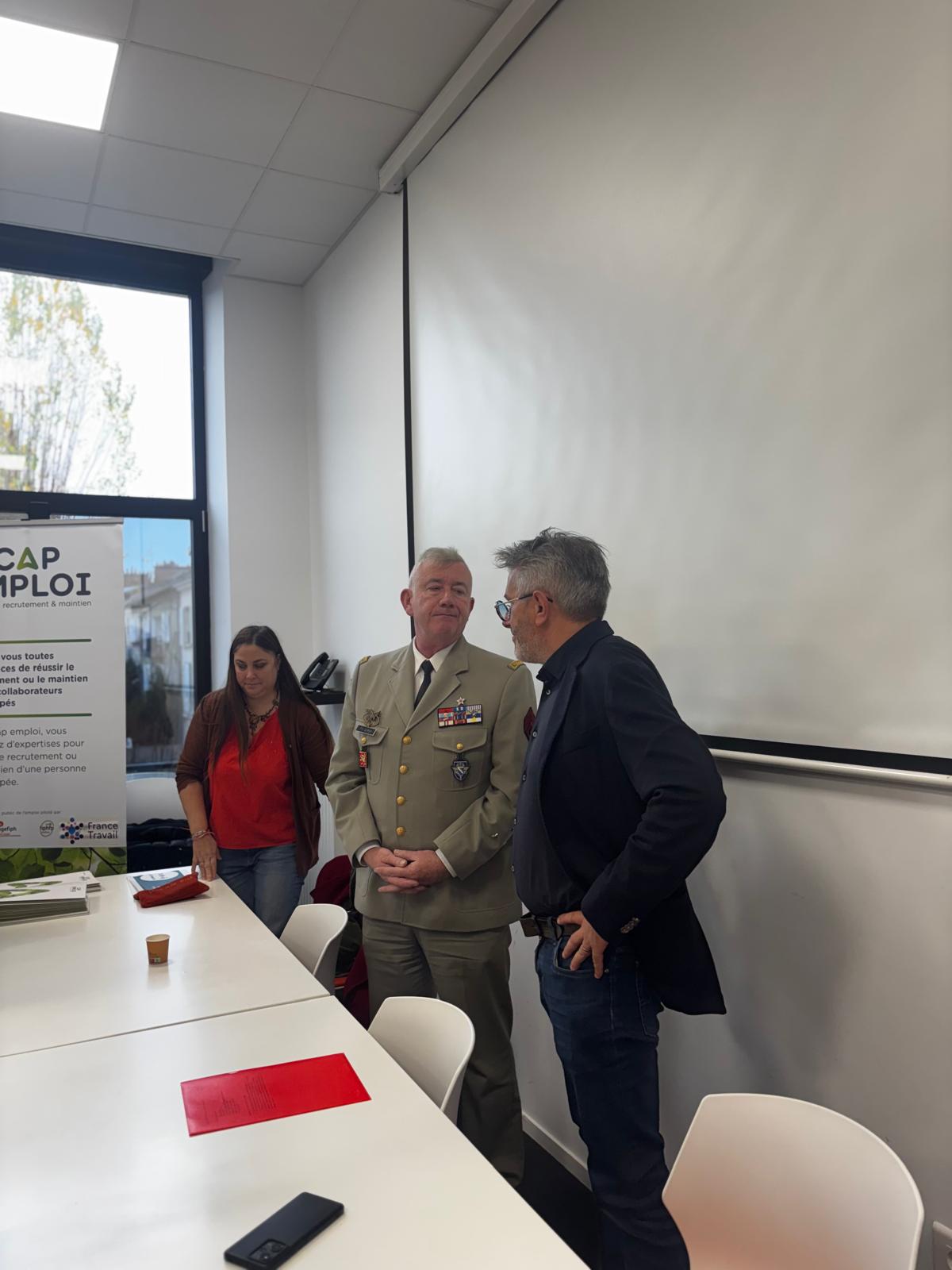 Nous avons pu aborder un sujet essentiel : les opportunités d’emploi offertes par l’intégration des militaires blessés (handicap visible ou invisible), de ceux en fin de carrière et de leurs conjoint(e)s.